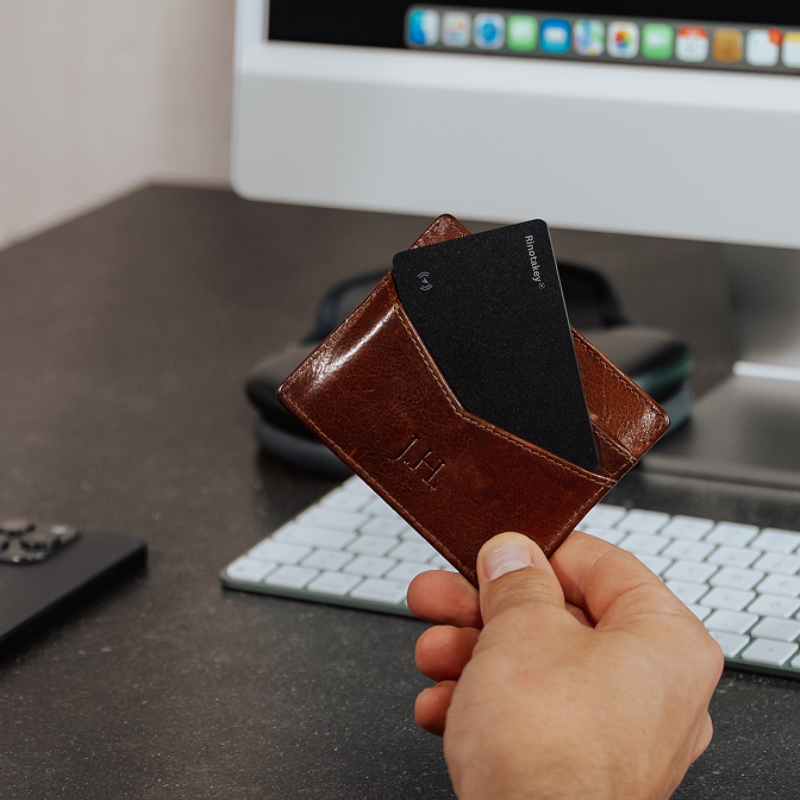 Technologie qui tient dans votre portefeuille. Alimenté par Apple Find My ou Android Find Hub. Construit avec une électronique de nouvelle génération et une charge sans fil